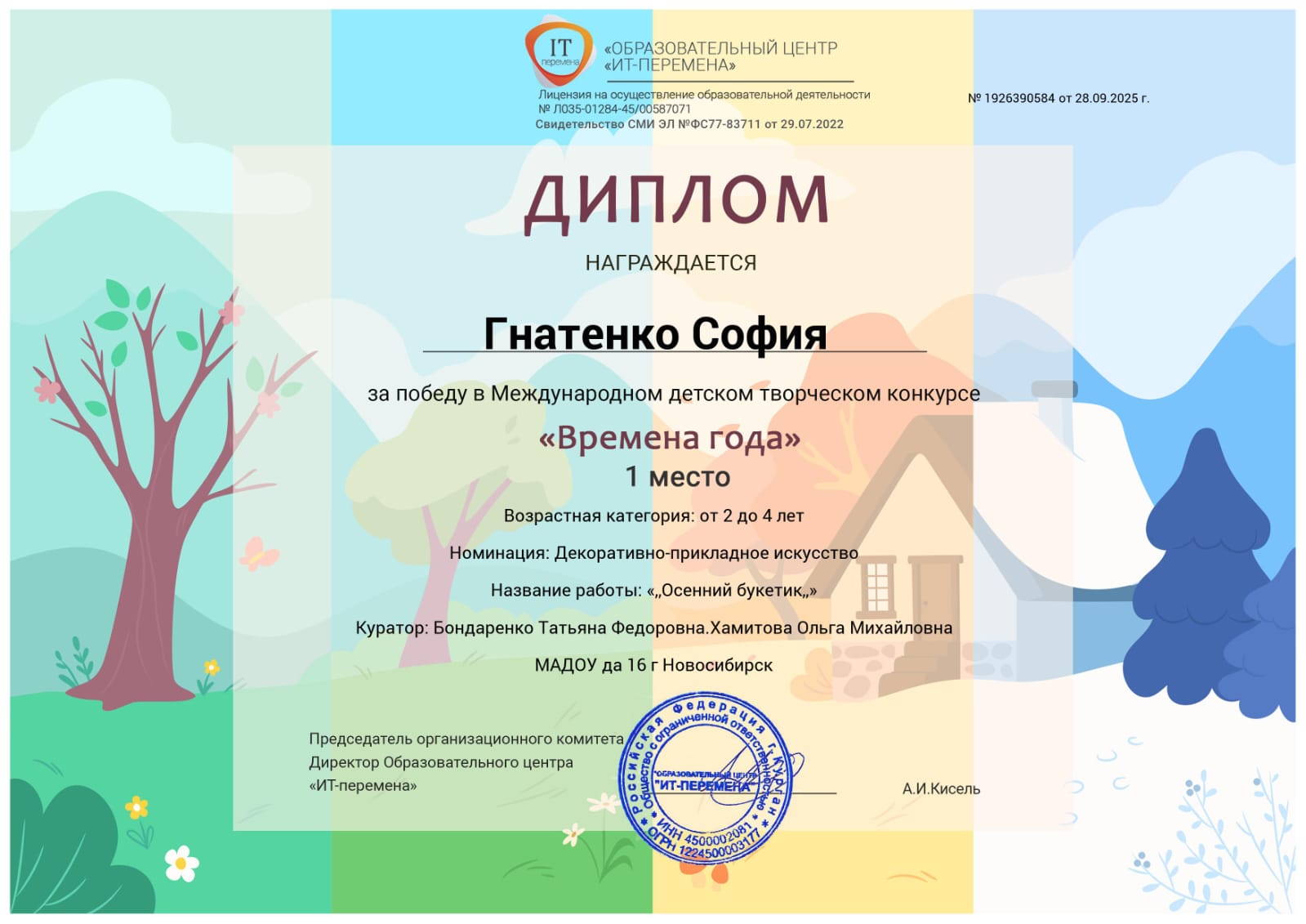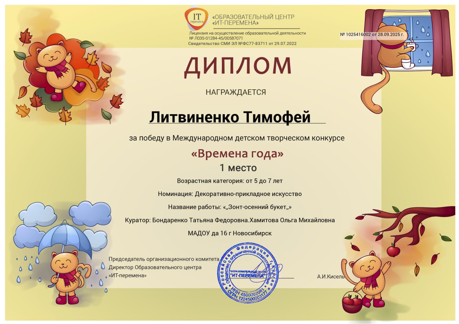Международный творческий конкурс "Времена года"Литвиненко Тимофей.